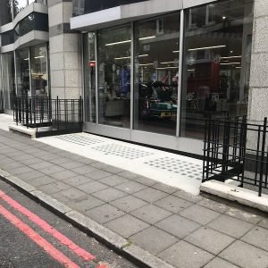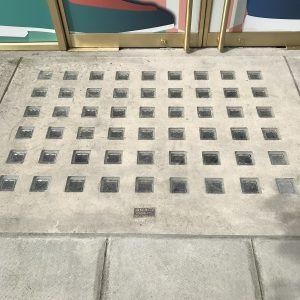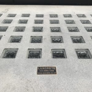 Here we cast in situ our P.150/100 construction using 100mm x 100mm glass lenses set at 150mm centres and our S.150/100 non glazed panels with brass demarcation set into the top face to denote the structural opening.