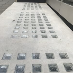 Luxcrete Pavement Lights construction type P.150/100 were installed to form bridge panels over the open lightwell.