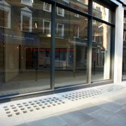 Glazed pavement lights have 100 x 100mm, 117 x 117mm or circular Ø117mm moulded glass lenses. Glass blocks and lenses can be supplied as clear or sandblasted, and bespoke options can be created to match or suit the surrounding architecture and design requirements.